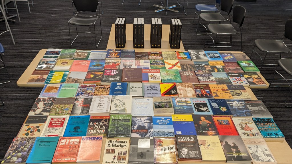 We focused on titles that fell outside YUL’s usual acquisition channels: titles older than five years, from presses without Canadian distribution channels. Some highlights include 31 titles from the University of the Philippines Press, 11 from Ateneo de Manila University Press, and 5 from Anvil Publishing. We acquired a full set of the second edition of the Encyclopedia of Philippine Arts: its final print run before it shifted to an online-only model.